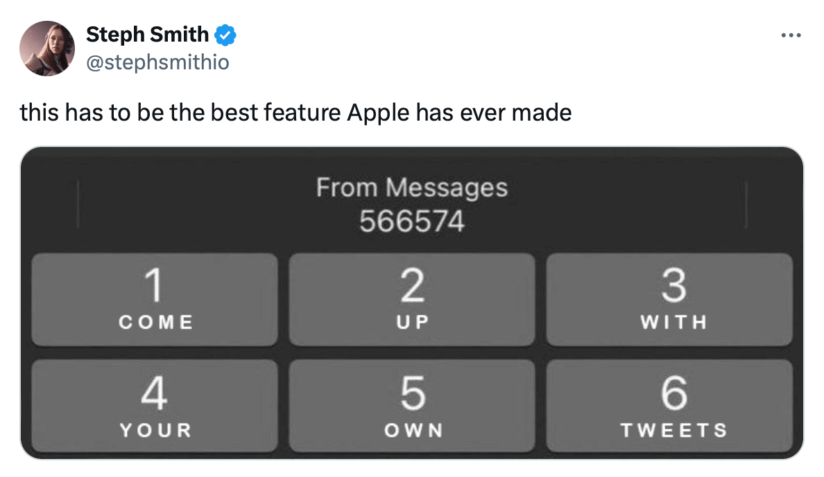 Almost no one, including me, noticed that the keypad had "Come up with your own tweets" written on the keys rather than the usual "ABCDEF".