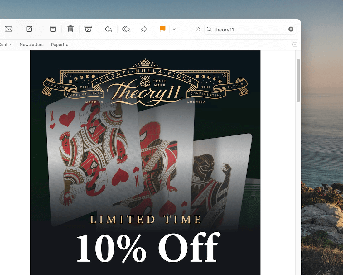 In another example, I received a 10% discount on a set of Harry Potter themed playing cards when I put it in my cart on the theory11 website and didn't go through with the purchase: