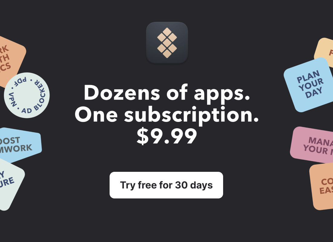 With Setapp, you pay a single subscription fee and use hundreds of apps without spending a dime extra. Use this link to get an extended 30-day trial period instead of the regular 7 days.