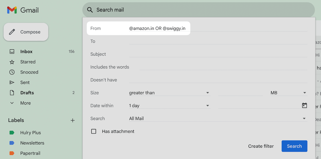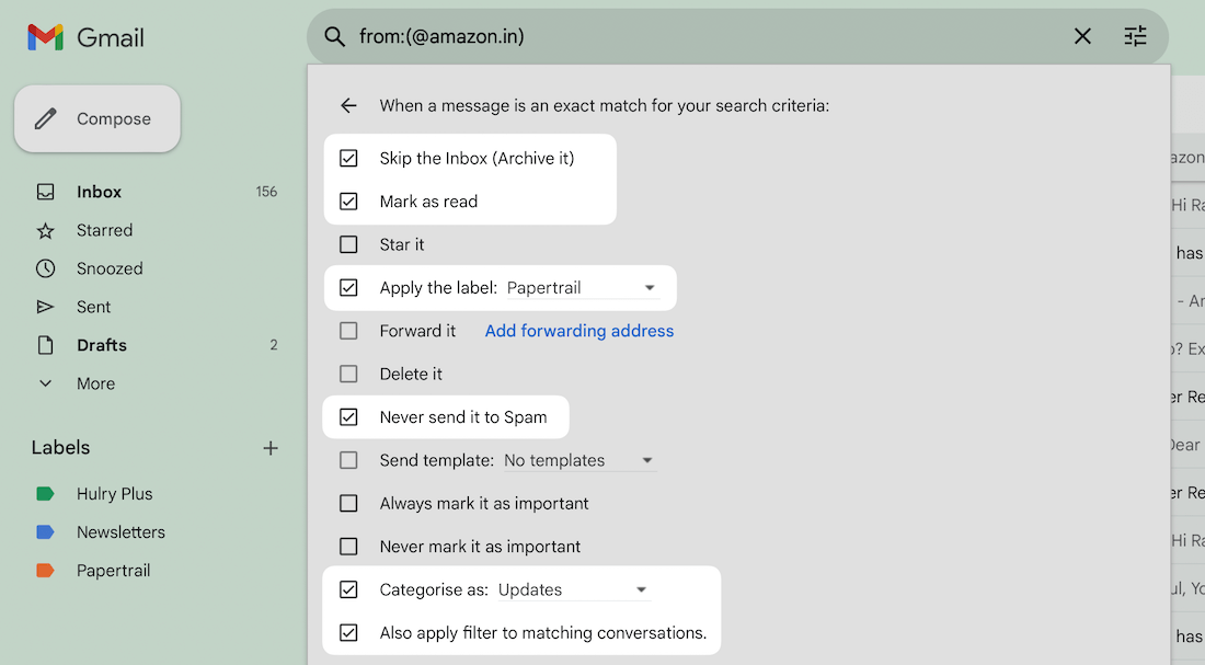 Inspired by Hey's Paper Trail mailbox, I've created a label called Papertrail, which collects all these transactional emails that hit my inbox every day.