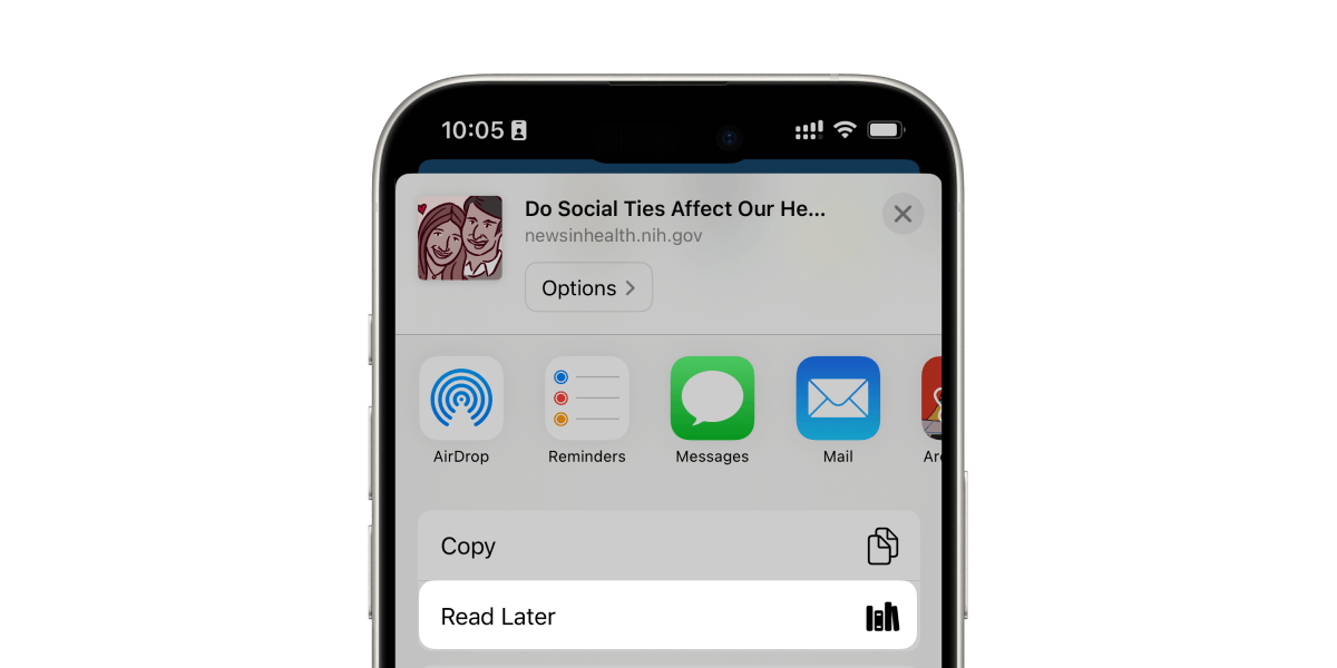 With this shortcut, I get an option added to the iOS share sheet where I can save links for reading later:
