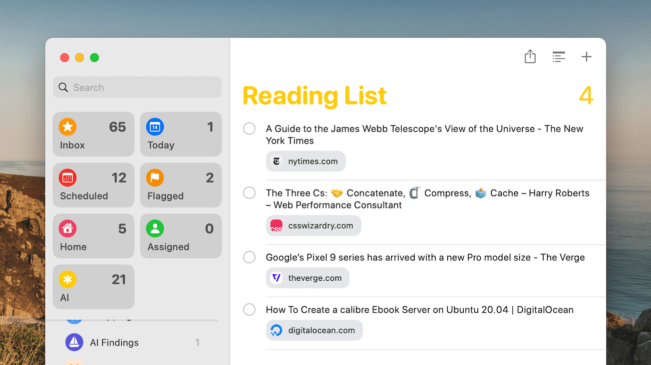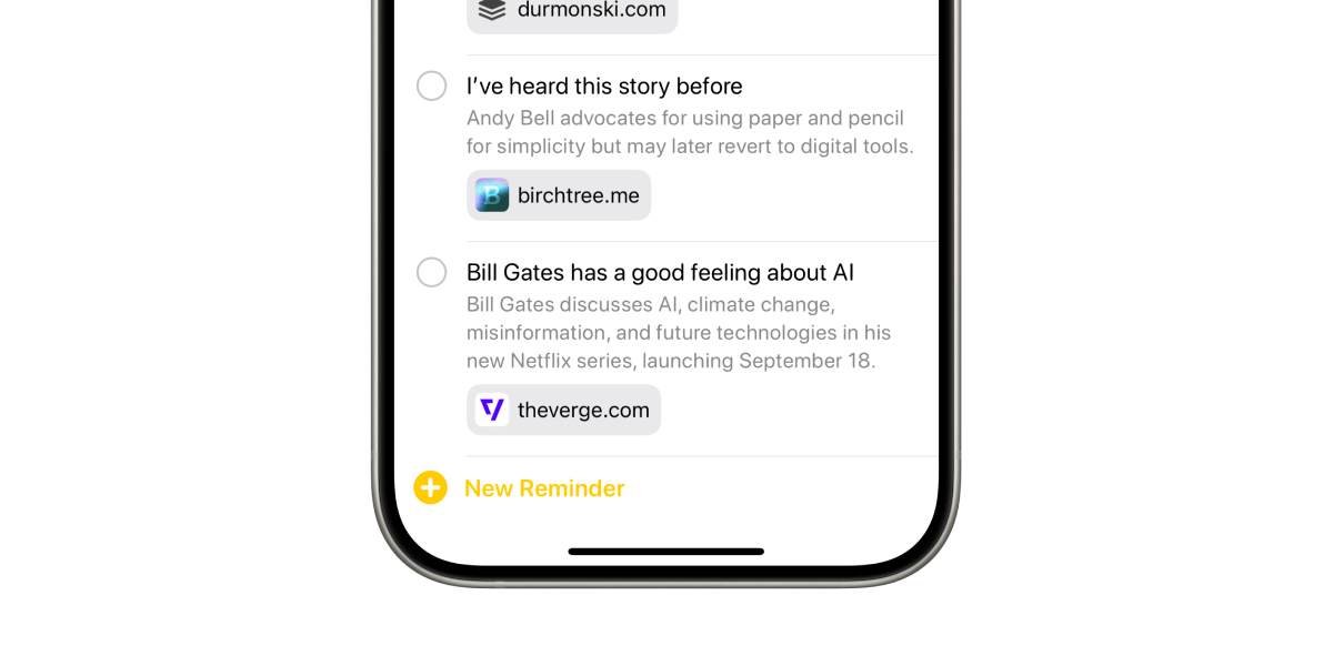 I save these links to a list in the Reminders app because I use it for managing tasks and all collected items, but you can swap out the last step in the shortcut to save links to Todoist, Apple Notes or any other app you use.