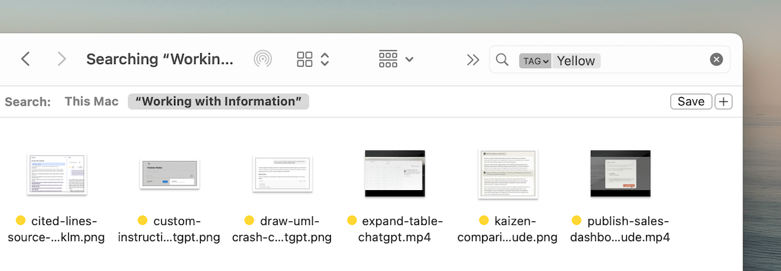 I often need to curate a few images and videos to add to a social media post or an article, and Finder's tagging system is a fantastic way to filter and organise files without moving them to a new folder and then moving back to the original folder once done.