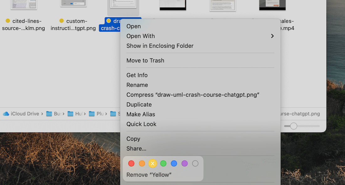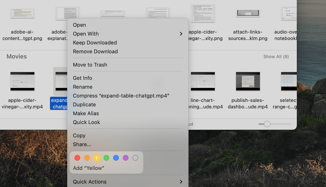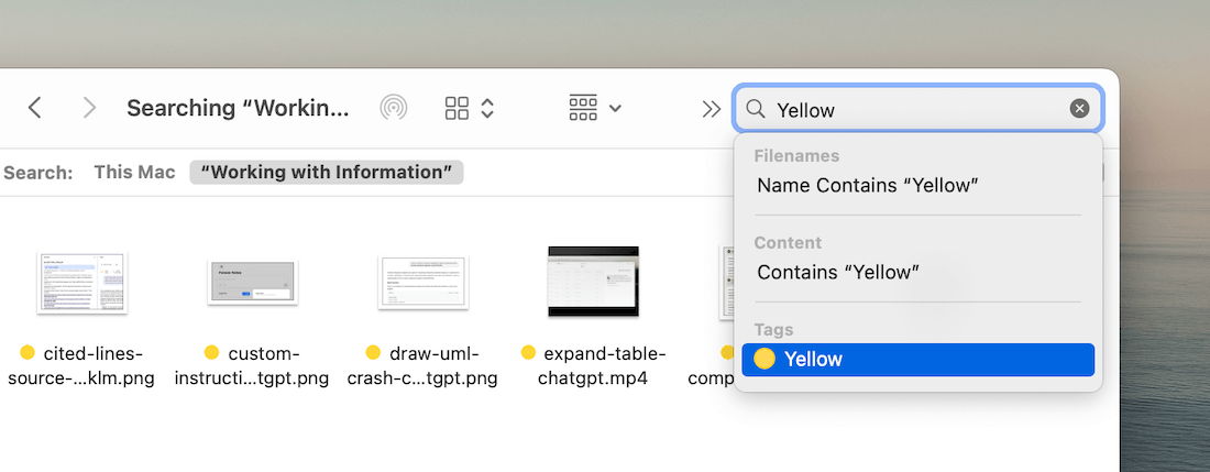 First, I right-click and tag each file I need with a colour, like Yellow: