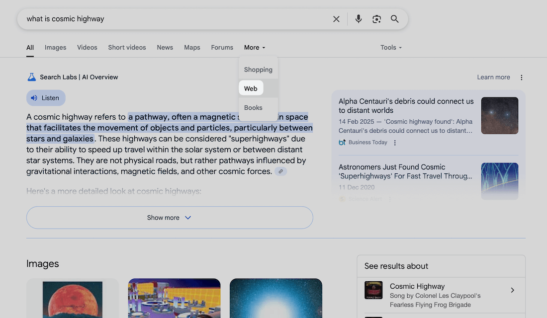 So, when you want cleaner search results, you can use a tool like this one as an interface to Google search.