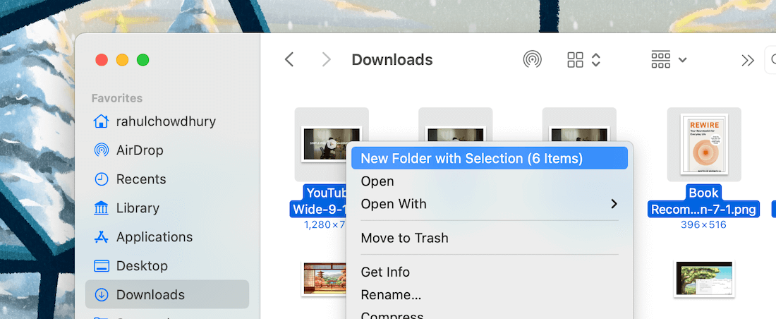 This creates a new folder with the selected files already moved inside from the parent folder.