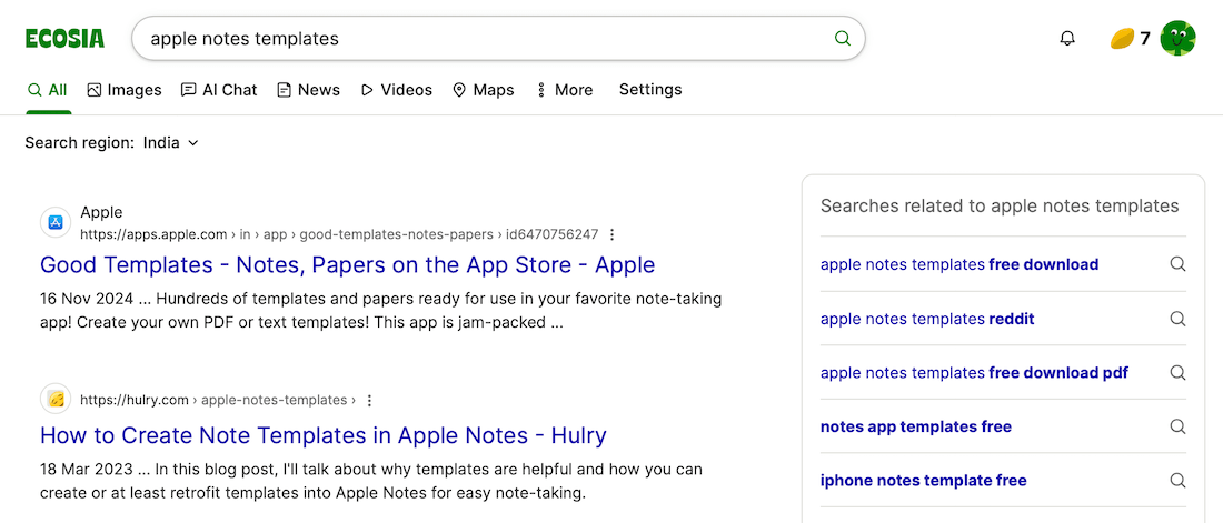 Regarding the search results quality, I haven't noticed much of a difference from Google Search because Ecosia serves results from either Google, Bing or European Search Perspective based on location and other factors.