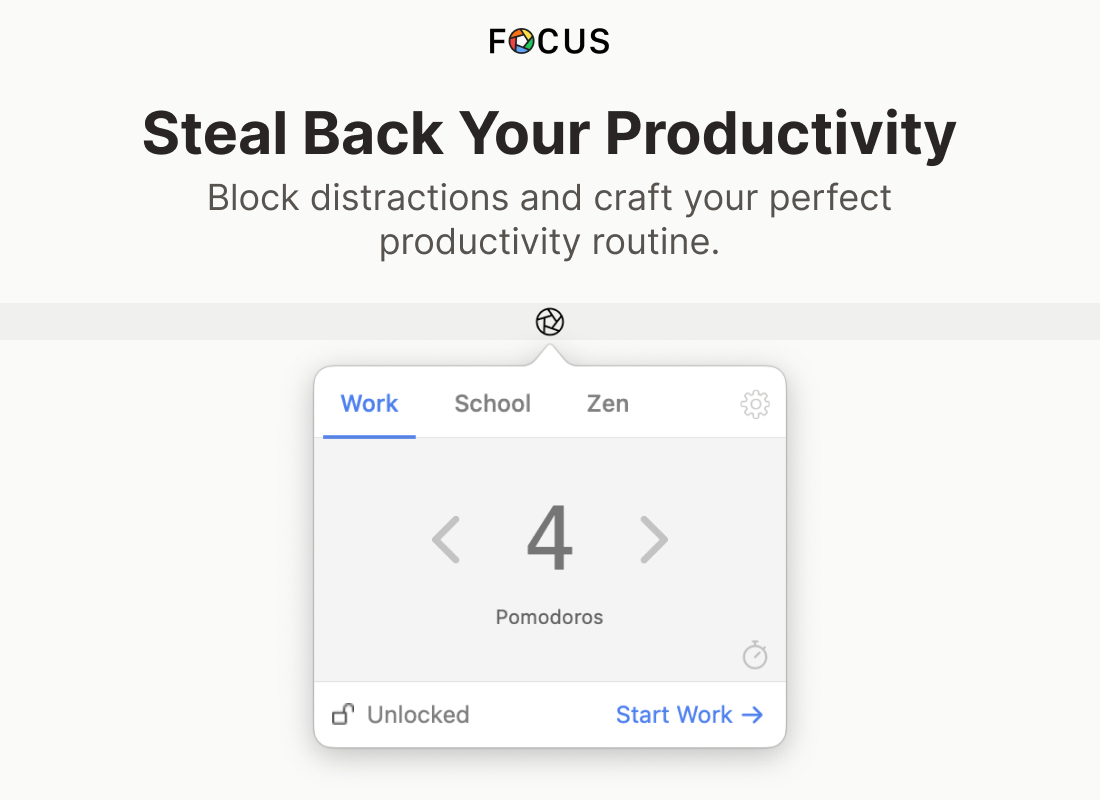 Focus is a Mac app that blocks distracting websites across all your browsers.
