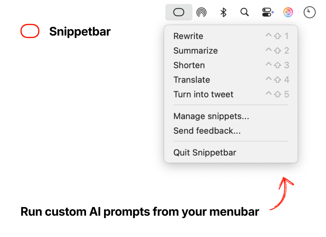 Built by Martin Rariga, founding designer at Equals, Snippetbar is a simple macOS menubar app that lets you run custom prompts directly on your clipboard.