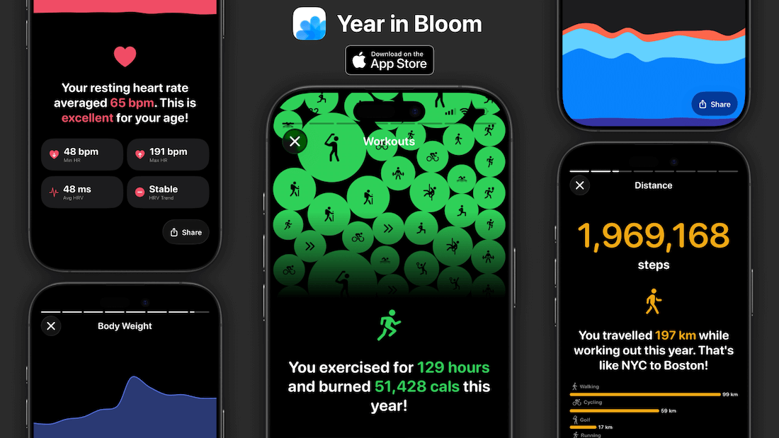 It's your personalized recap of the year, powered by Apple Health data. Get more insights into your workouts, nutrition, sleep, heart health, VO₂ max, and weight.