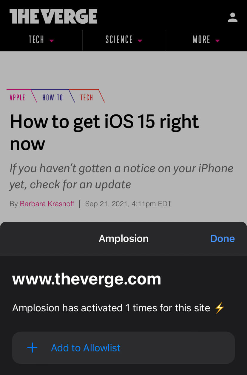 Amplosion works in the background and redirects to the non-AMP version of the websites I visit automatically.