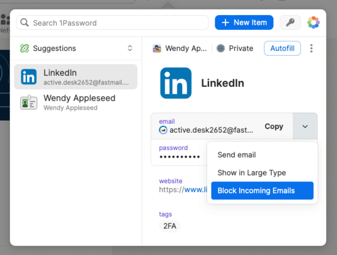 If you have a 1Password account and an active Fastmail account, you can connect these services to autofill random email addresses while signing up on a website or app.
