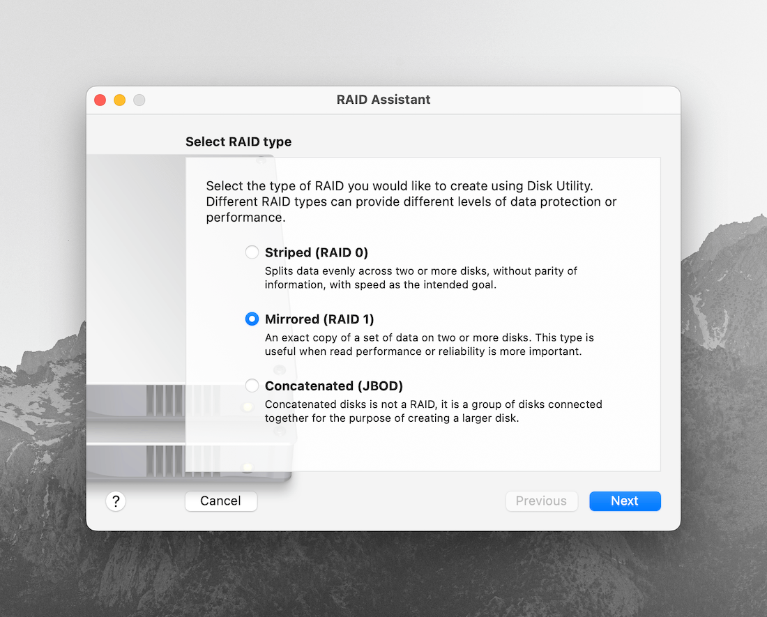 So, if one of the physical hard disks fails, I would still have all of my data safe and accessible from the second hard disk.